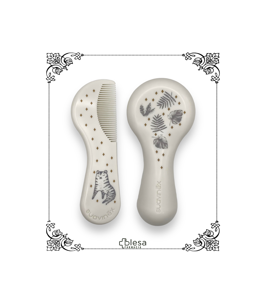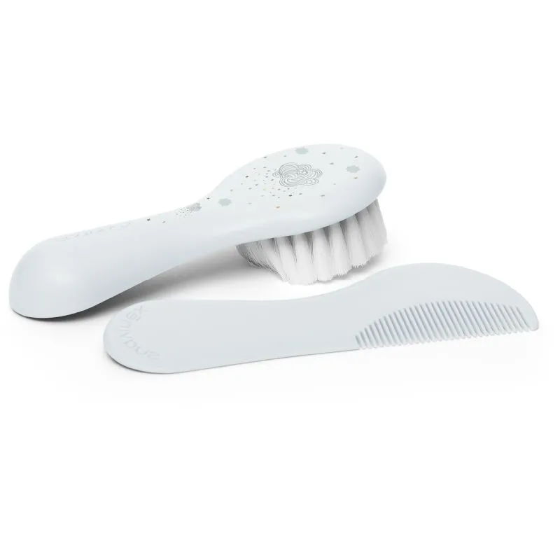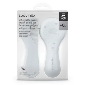 La brosse et le peigne bébé Dreams de la marque Suavinex sont spécialement conçus pour respecter la délicatesse du cuir chevelu des nouveau-nés. Leur forme arrondie et ergonomique, associée à des matériaux doux et sûrs, offre un confort optimal lors du coiffage. La brosse est dotée de poils denses et extra souples pour lisser en douceur sans irriter, tandis que le peigne est muni de dents fines et arrondies pour démêler sans tirer ni griffer. Adapté dès la naissance, ce set est idéal pour l’hygiène quotidienne des tout-petits et constitue également un joli cadeau de naissance. Confectionné sans Bisphénol A et avec des poils synthétiques non issus d’animaux, il allie sécurité, hygiène et tendresse.